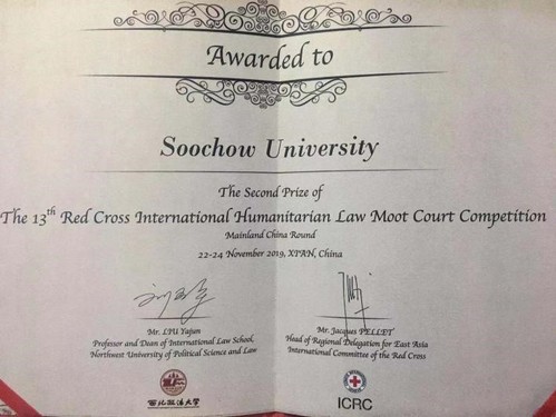 2019年11月,由红十字国际委员会与西北政法大学联合主办的第十三届中国大陆地区红十字国际人道法模拟法庭竞赛在西北政法大学举行。成人影片 代表队在两场积分赛的角逐中表现优秀,凭借稳定的现场发挥和优异的书状分数,在三十九支参赛队伍中脱颖而出,荣获本次大赛二等奖。