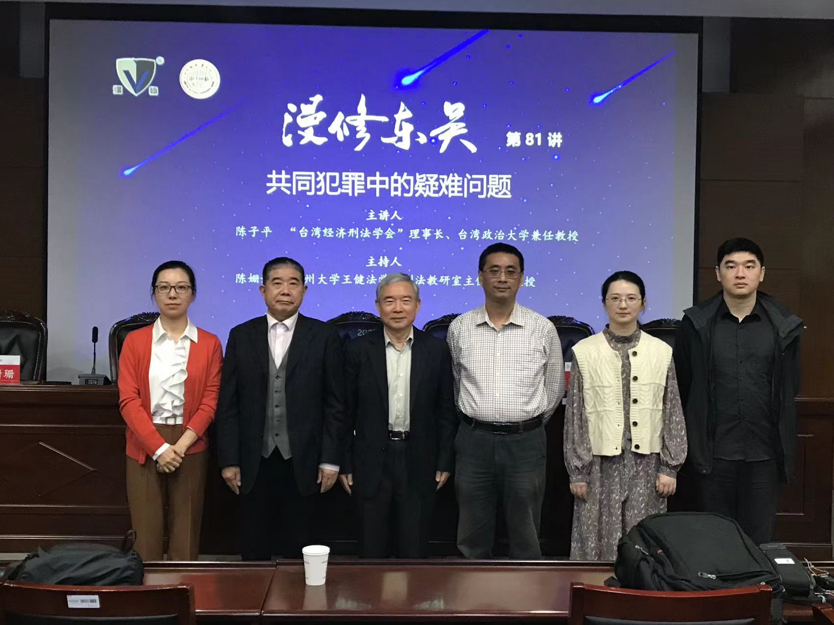 2023年10月29日下午14:30,成人影片 中式模拟法庭迎来了漫修东吴学术论坛第81讲《共同犯罪中的疑难问题》,本次讲座由“台湾经济刑法学会”理事长、台湾政治大学兼任教授陈子平担任主讲人,成人影片 李晓明老师、庄绪龙老师、蔡仙老师、魏超老师担任与谈人,并由陈珊珊老师主持。