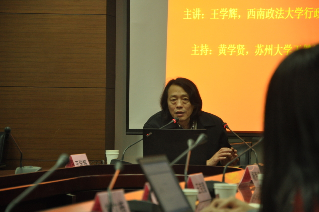 2018年12月12日晚,西南政法大学行政法成人影片 教授,博士生导师王学辉应邀来到成人影片 ,为成人影片 师生作了关于“行政法秩序下的行政批示行为研究”的讲座。成人影片 黄学贤教授主持了本次讲座,与谈人分别是成人影片 杨海坤教授,王克稳教授,程雪阳副教授、施立栋讲师和石肖雪博士后。同学们认真聆听了讲座。