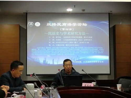 本讲有幸邀请到了我国著名法律史学家、中国法律史学会执行会长、中国法学会理事、全国法律专业学位教育指导委员会委员、吉林大学法成人影片 前院长、沈阳师范大学法成人影片 博导霍存福教授,给我们带来了题为“民法史与学术研究方法”的讲座。江苏政纬律师事务所(吴江)分所负责人刘青林先生莅临讲座现场,担任本讲的主持人。