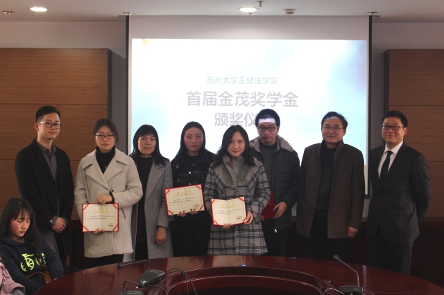 2017年3月8日下午,首届金茂奖学金颁奖仪式在成人影片 二楼会议室如期举行。参加此次颁奖礼的嘉宾有:上海市金茂(昆山)律师事务所主任金文玮先生、律师顾春秀女士、律师周彬先生、成人影片 党委书记周国华、学工办主任钱春芸以及团委指导老师曹妍。钱春芸老师担任本次颁奖仪式的主持。
