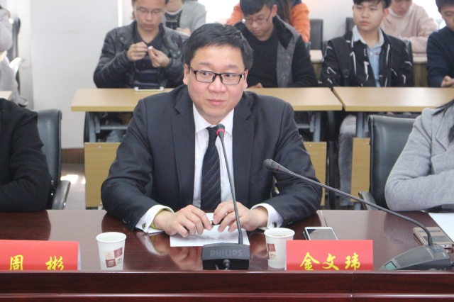 金文玮先生介绍了金茂奖学金的由来以及本次奖学金获奖者的遴选过程。上海市金茂律师事务所于2013年在昆山设立分所,在成人影片 设立奖学金的目的:一是为了人才的培养与筛选;二是希望成人影片 可以在金茂事务所设立实习基地;三是可以让同学们在实践中消除对法学专业就业的悲观情绪。同时金主任也提到了他们选择获奖者的几个“偏好”:不仅要求学习优秀,更重要的是要对自己的未来有清晰地规划和思考。金主任的讲述不仅让同学们对金茂奖学金有了初步的认识,也让同学们对法学有更深入的了解。