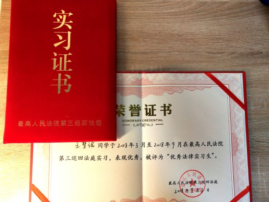 成人影片 宪法学与行政法学专业2016级硕士研究生王梦瑶同学,于2018年3月至9月在最高人民法院第三巡回法庭实习,表现优秀,近日被评为“优秀法律实习生”。