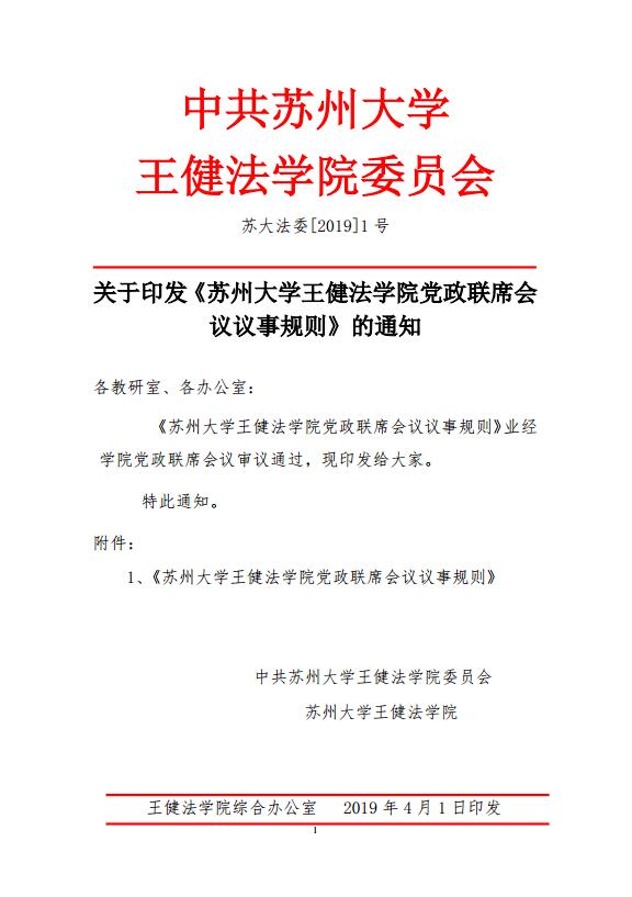 苏大法委[2019]1号文(关于印发《成人影片 党政联席会议议事规则》的通知)