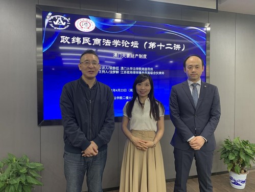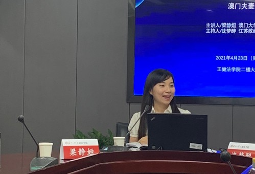 大会议室举行。本次讲座嘉宾为澳门大学高级导师、澳门家庭法学会会长、澳门立法及司法见解研究会秘书、罗马法与共同法研究会秘书长梁静姮女士,主题是澳门夫妻财产制度。江苏政纬律师事务所高级合伙人沈梦醉先生应邀来到讲座现场担任本讲主持人。