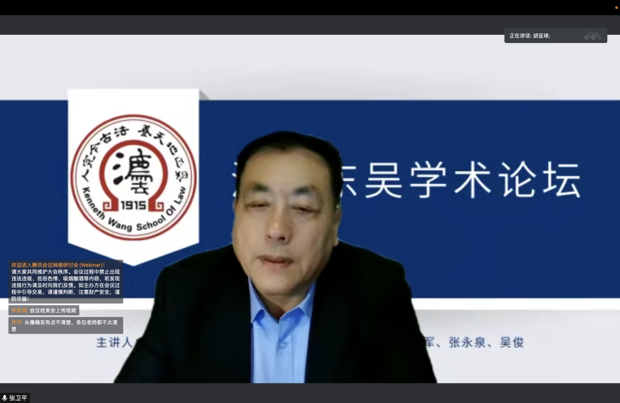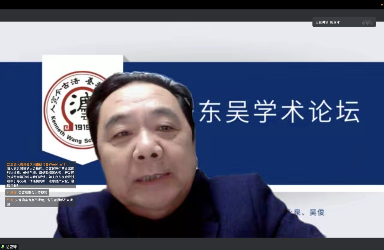 11月30日晚,漫修东吴学术论坛第65期《民法与民诉法关系结构的分析》通过腾讯会议的形式顺利举办。